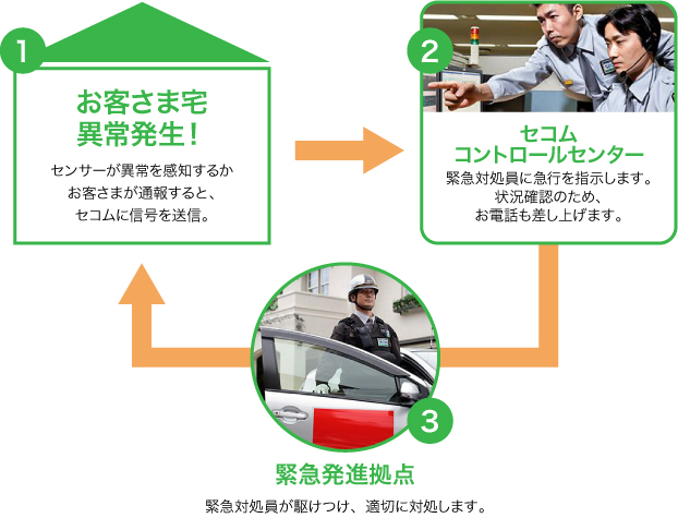 ![]() 異常をセコムに送信。 |